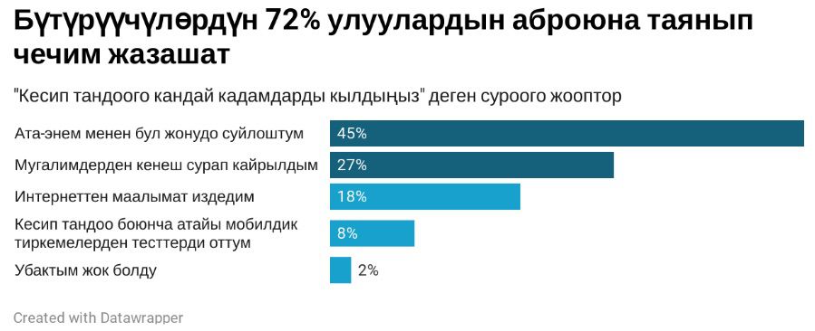 Жаштар кесипти кантип тандоону, эмнелерди эске алууну билишеби? Сурамжылоодо белгилүү болду — бүтүрүүчүлөргө профессия тандоодо кесиптер тууралуу маалыматтар, тесттер, түрдүү ишканаларга экскурсия жана ийримдер керек.