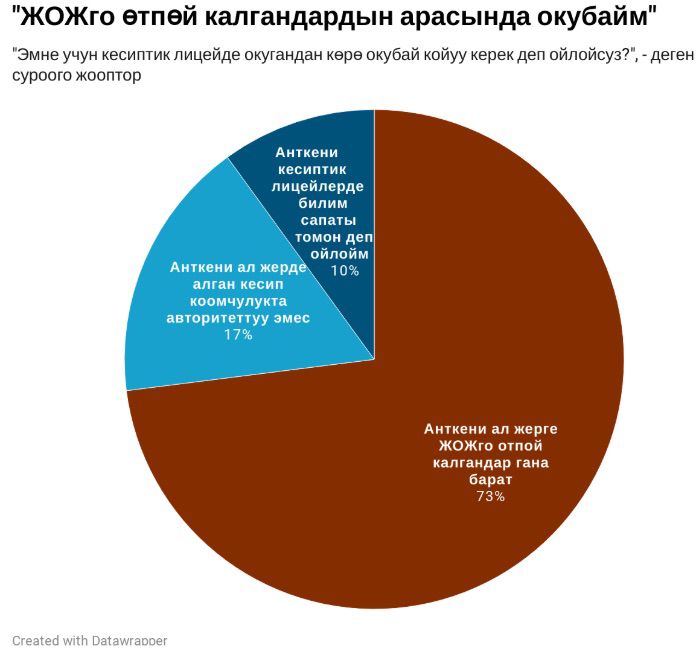 Жаштар кесиптерди жакшы же жаман деп бөлөбү? Биздин сурамжылоодо пикирлер бөлүнүп кетти — респонденттердин жарымы жакшы кабыл алынбаган кесиптер бар деп жооп беришсе, жарымы андай кесиптер жок дешти.